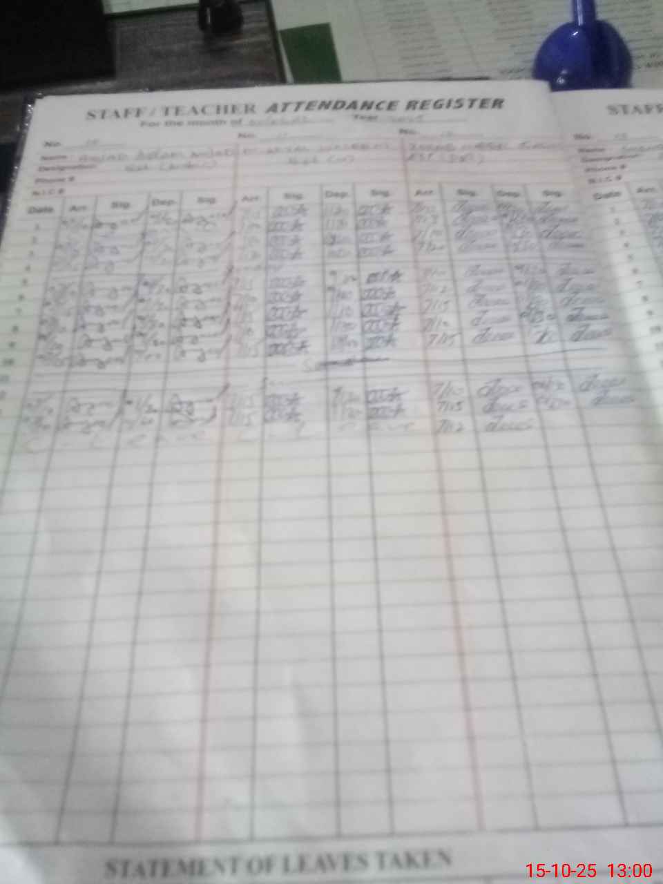 | CNIC | Full Name | Designation | R/C | Absence During Last Calender Month |