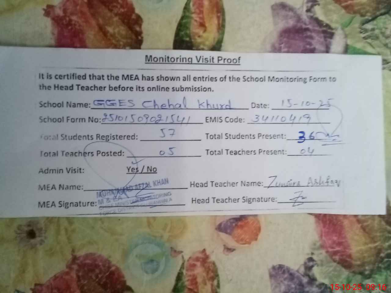 | EMIS Code: 34110419 | Name of School: GGES CHEHAL KHURD | |||