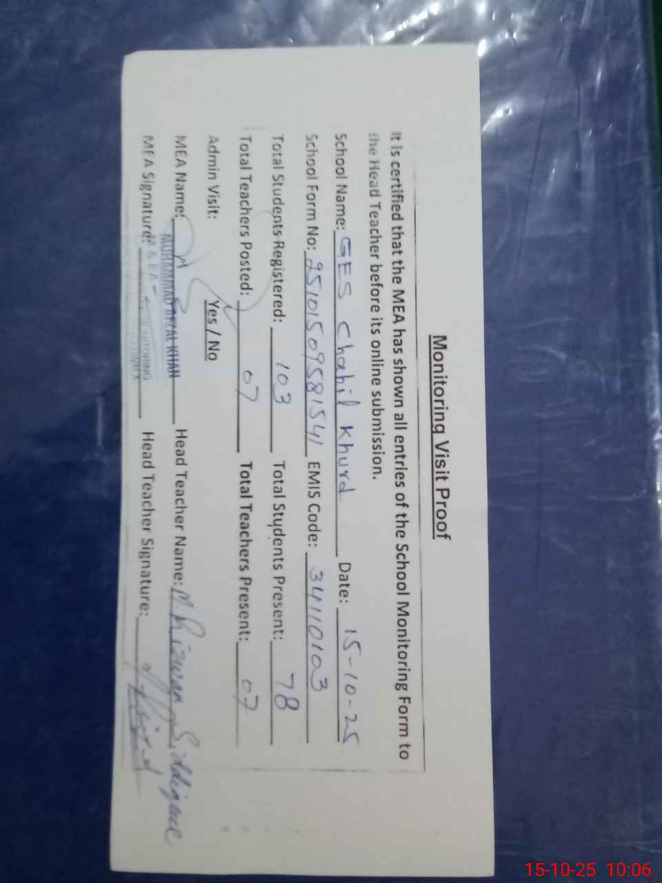 | EMIS Code: 34110103 | Name of School: GES CHAHIL KHURD | |||