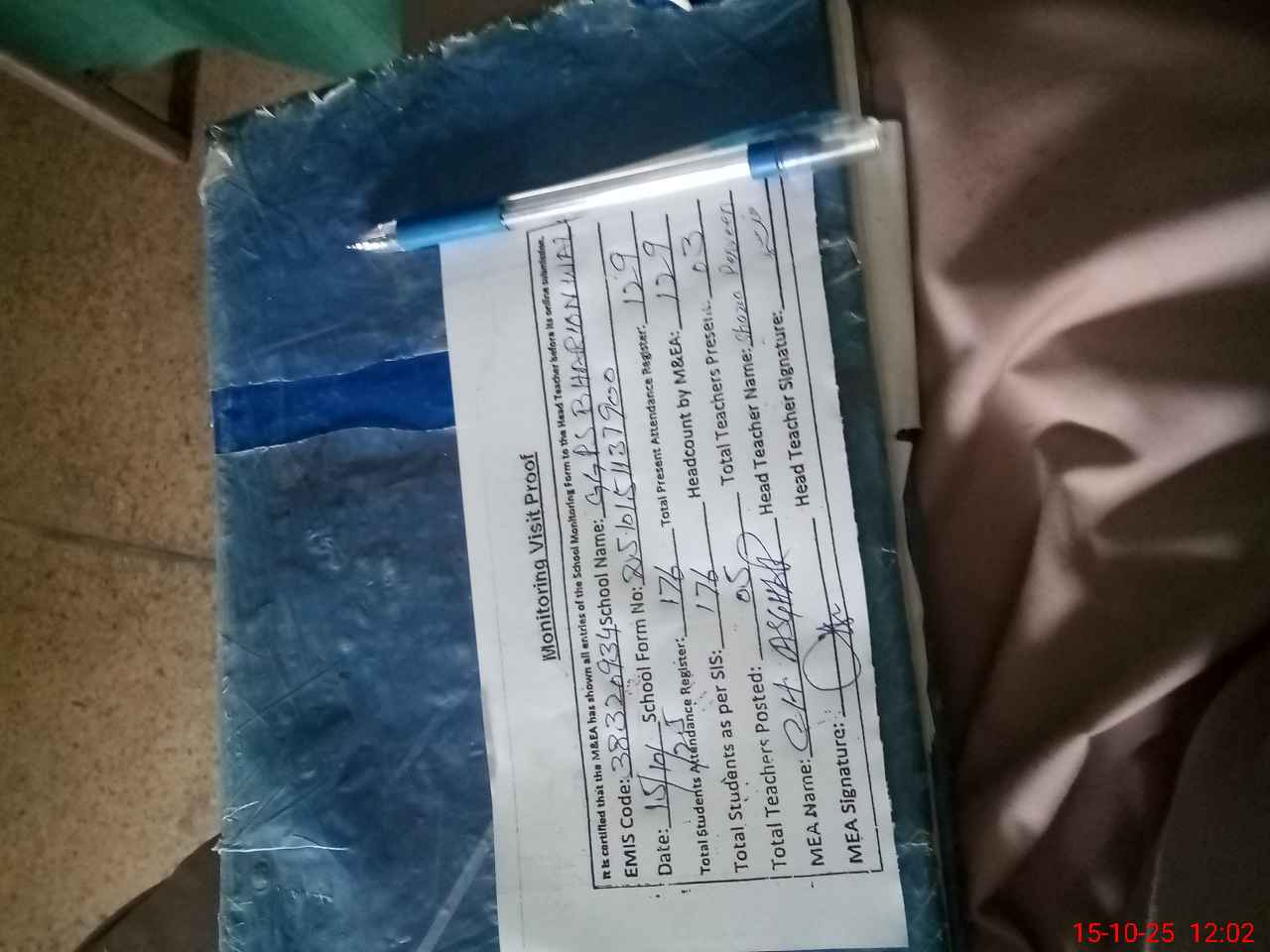 | Attendance Register | Head Teacher | MEA with School | Visit Proof |