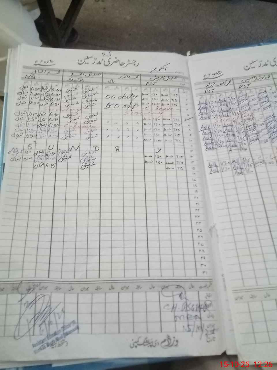| CNIC | Full Name | Designation | R/C | Absence During Last Calender Month |