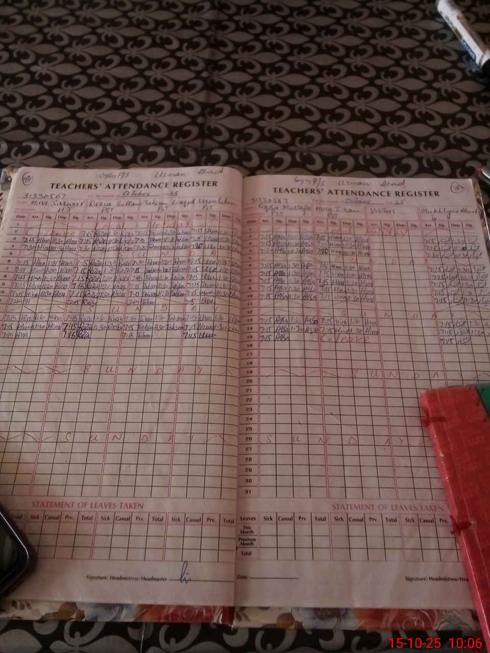 | Name: Hi**** Sa**** Designation: (School Headmaster's/Headmistress's) PST Phone/Cell Number: 03**** |