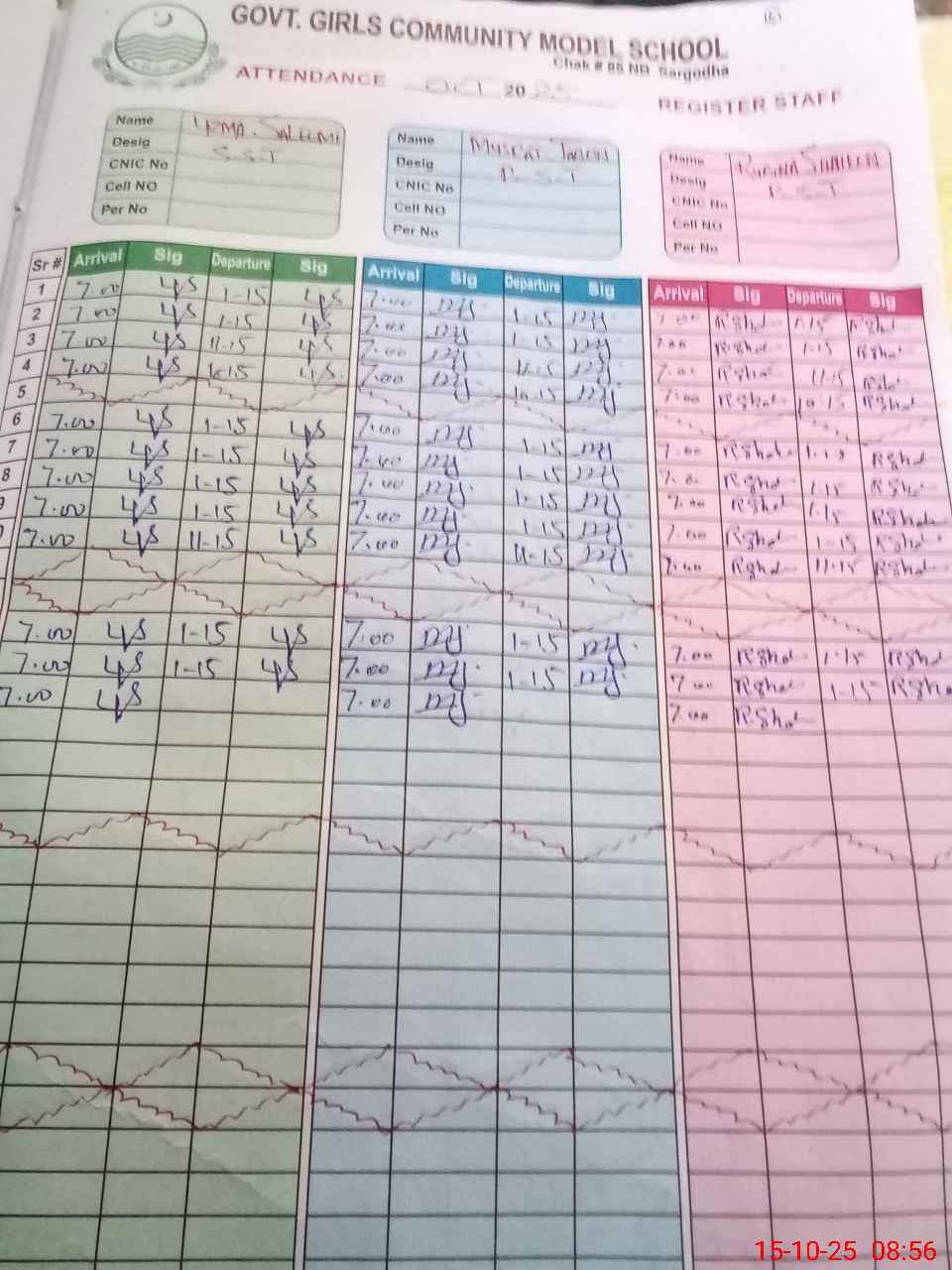 | CNIC | Full Name | Designation | R/C | Absence During Last Calender Month |