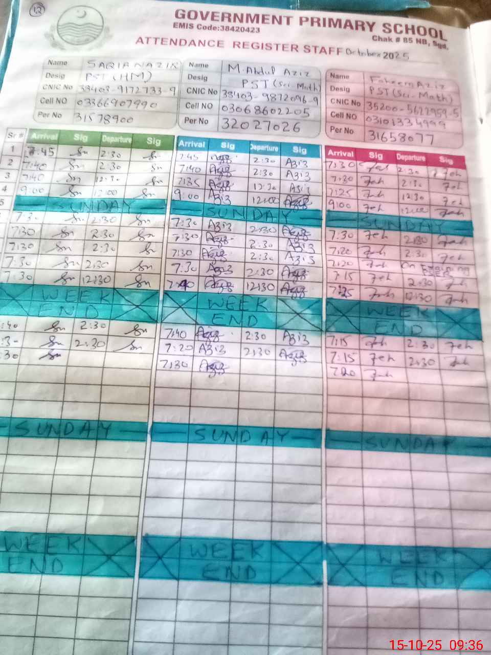 | EMIS Code: 38420423 | Name of School: GPS CHAK NO.85 NB | |||