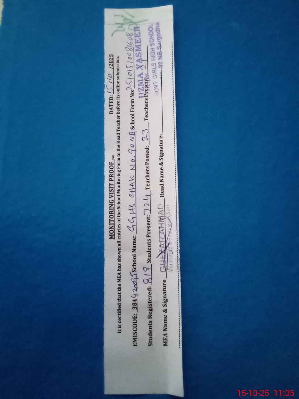 | EMIS Code: 38420095 | Name of School: GGHS CHAK NO.90 NB | |||