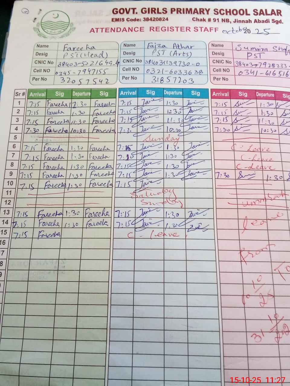 | Name: FR**** Designation: (School Headmaster's/Headmistress's) PST Phone/Cell Number: 03**** |
