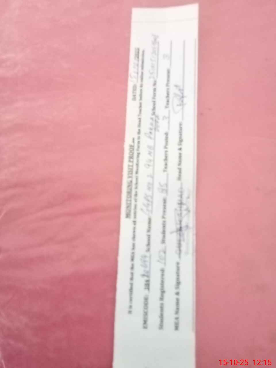 | Attendance Register | Head Teacher | MEA with School | Visit Proof |