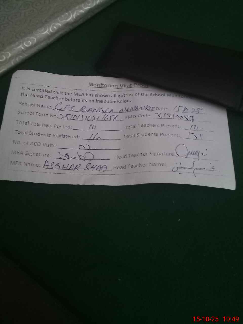 | EMIS Code: 31310050 | Name of School: GES BENGLAW NAWAN KOT | |||