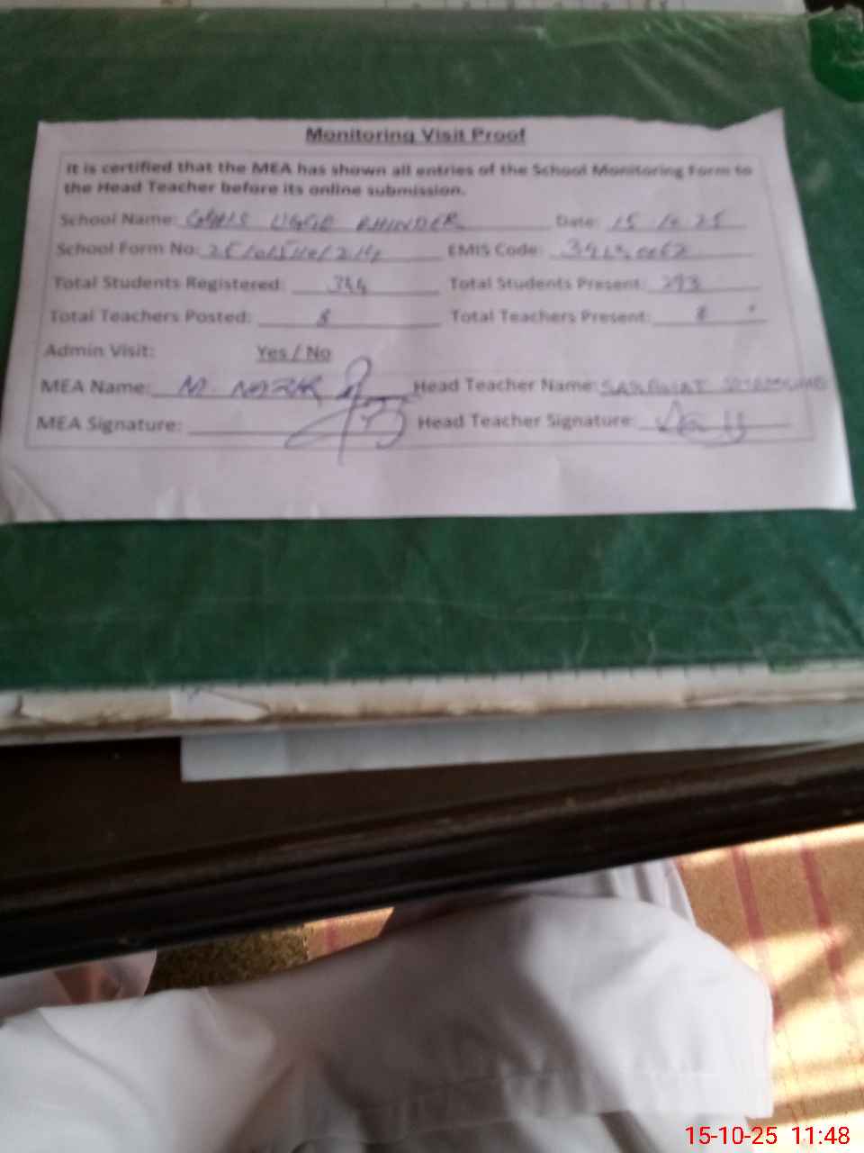 | EMIS Code: 34130067 | Name of School: GGHS UGGO BHINDER | |||