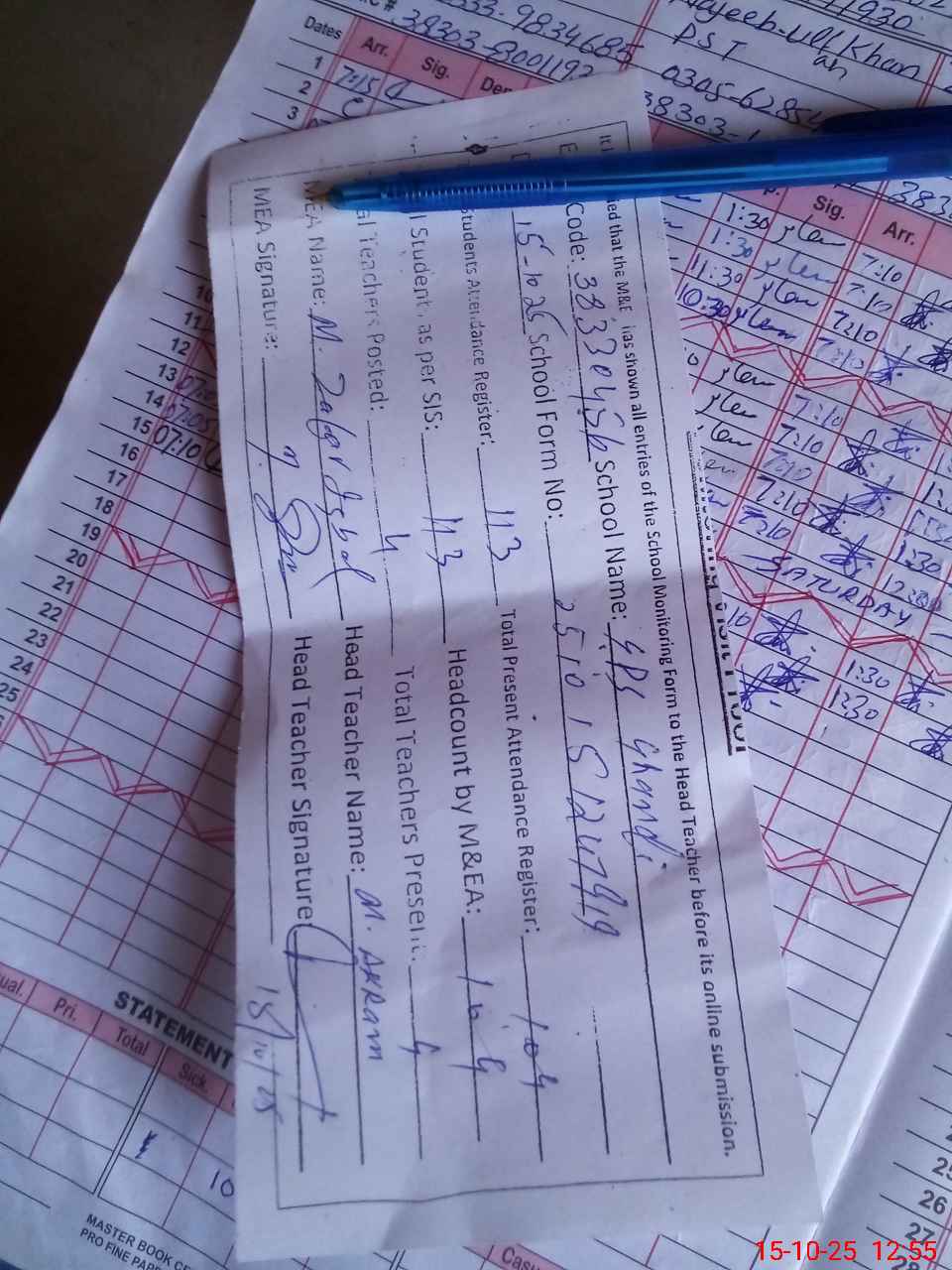 | Attendance Register | Head Teacher | MEA with School | Visit Proof |