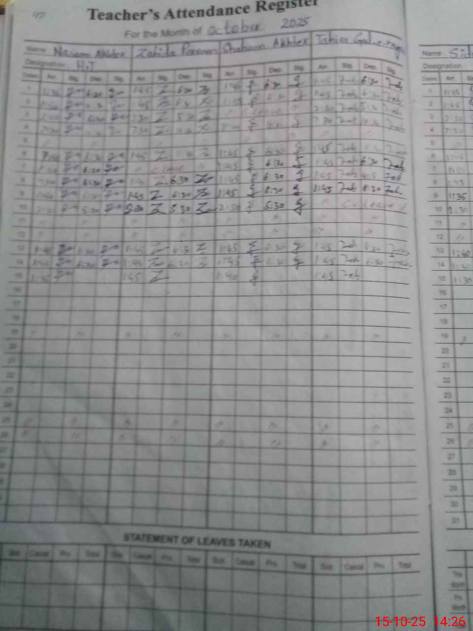 | Leave | Duty | Absent | Maternity | Medical | Ex- Pak |