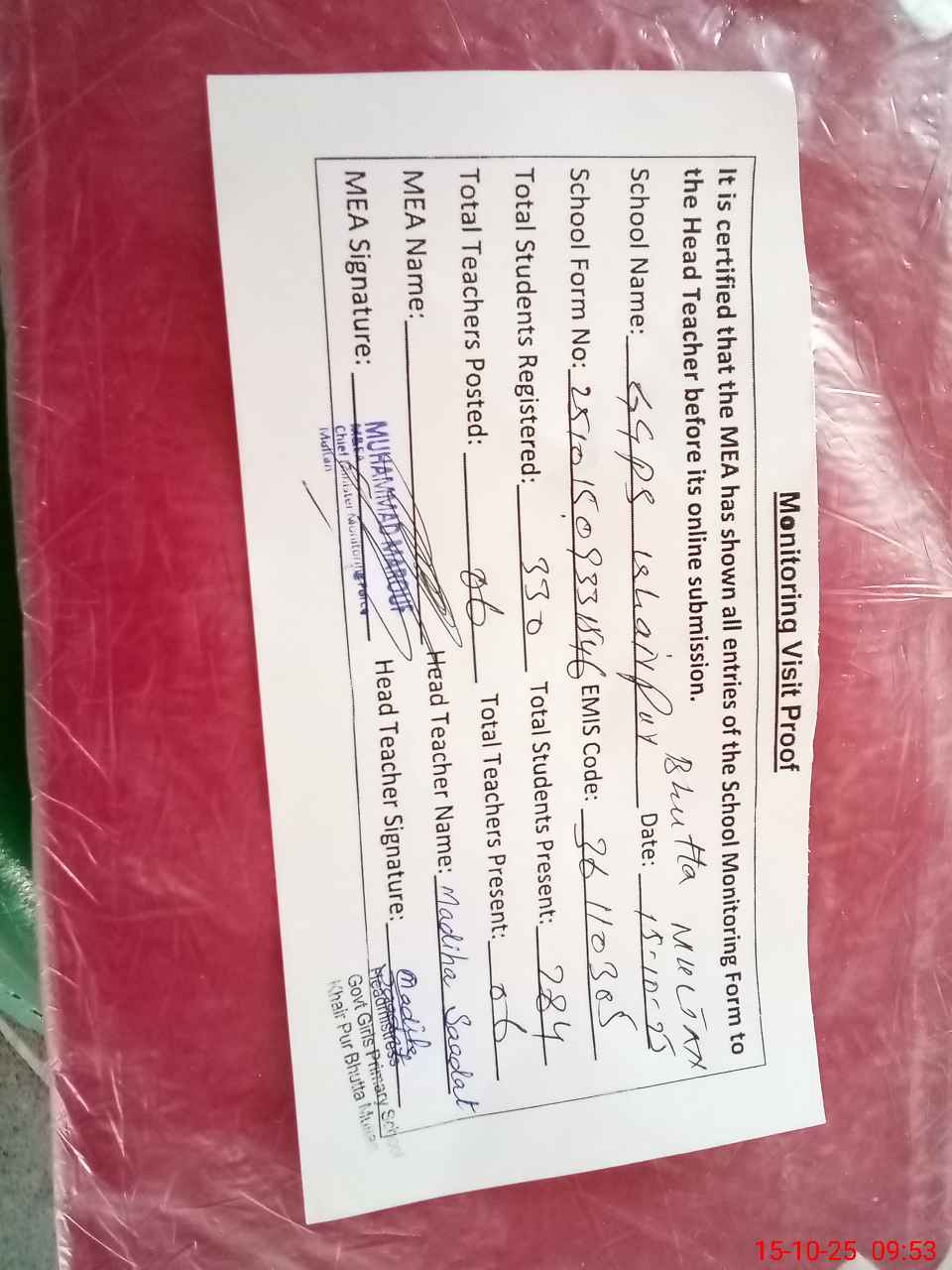 | EMIS Code: 36110305 | Name of School: GGPS KHAIR PUR BHUTTA QASIM BELA | |||
