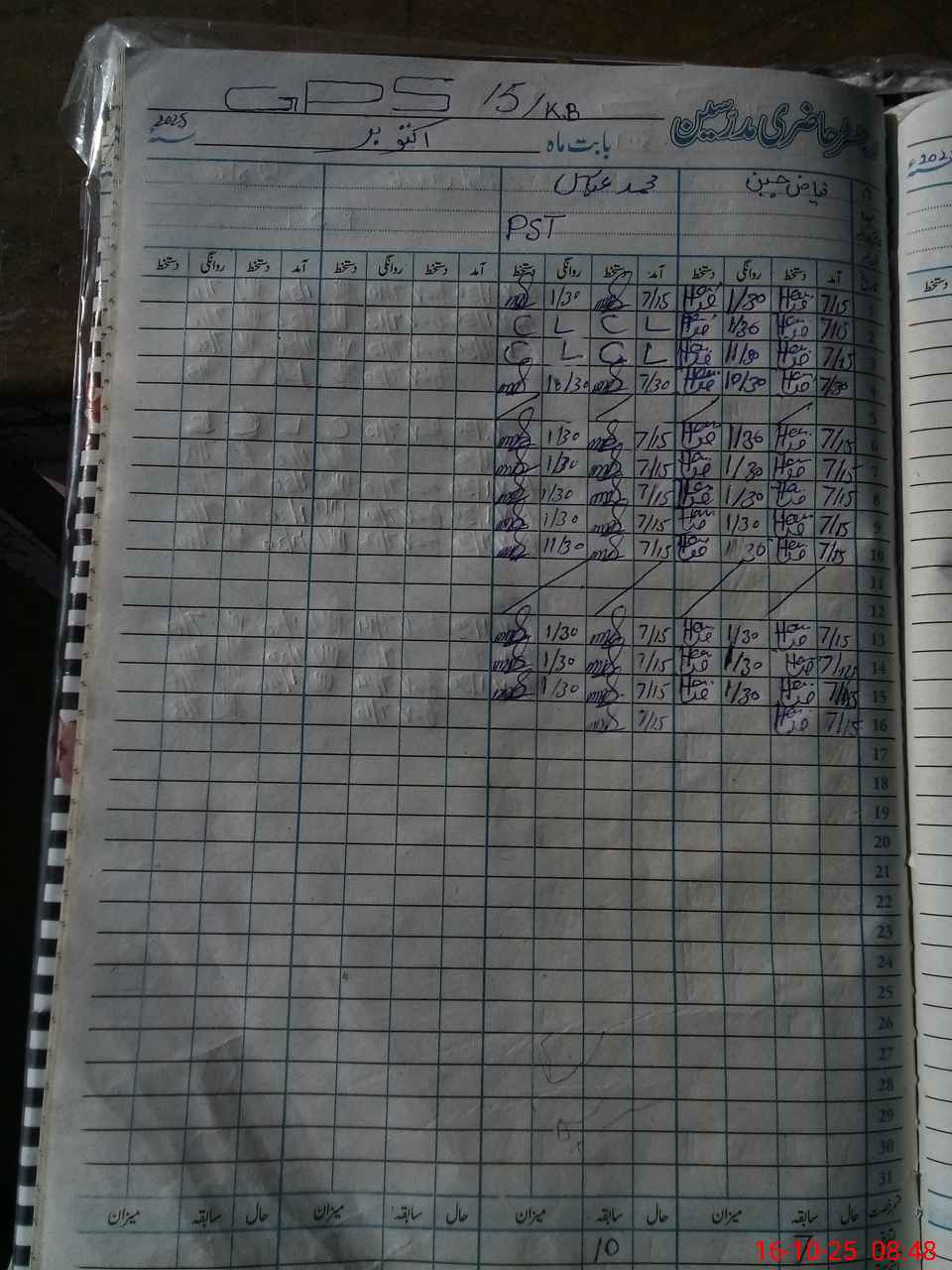 | CNIC | Full Name | Designation | R/C | Absence During Last Calender Month |
