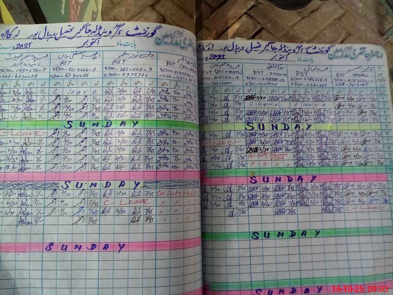 | CNIC | Full Name | Designation | R/C | Absence During Last Calender Month |