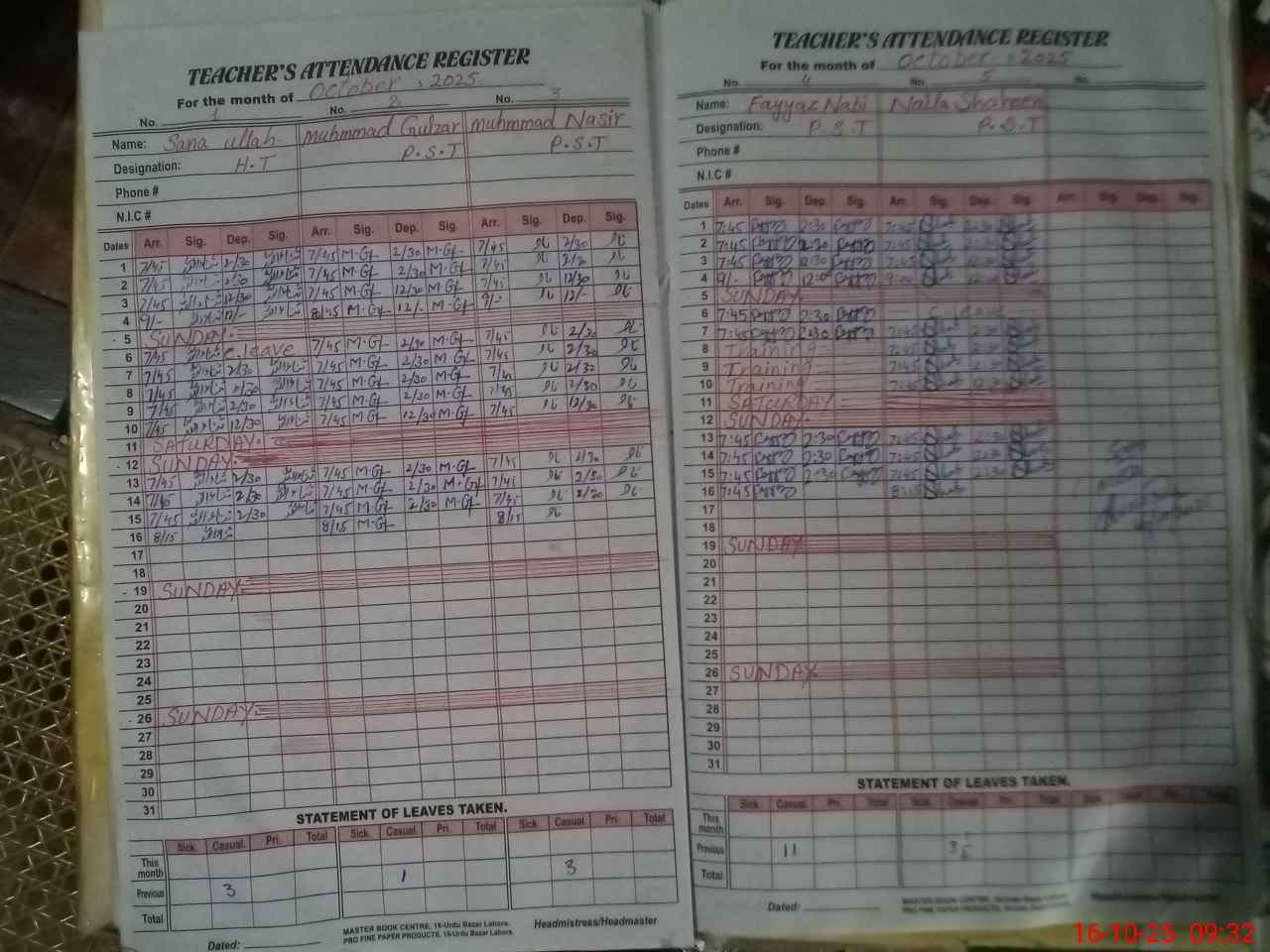 | Name: SA**** UL**** Designation: (School Headmaster's/Headmistress's) PST Phone/Cell Number: 03**** |