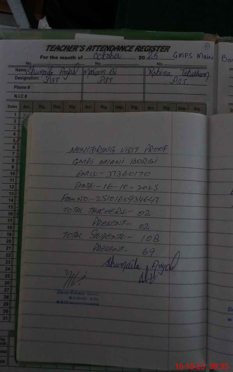 | Attendance Register | Head Teacher | MEA with School | Visit Proof |