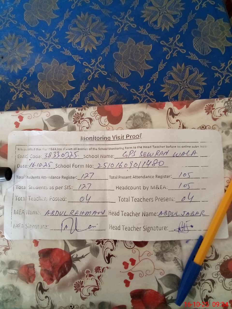 | EMIS Code: 38330325 | Name of School: GPS SEWRAN WALA | |||