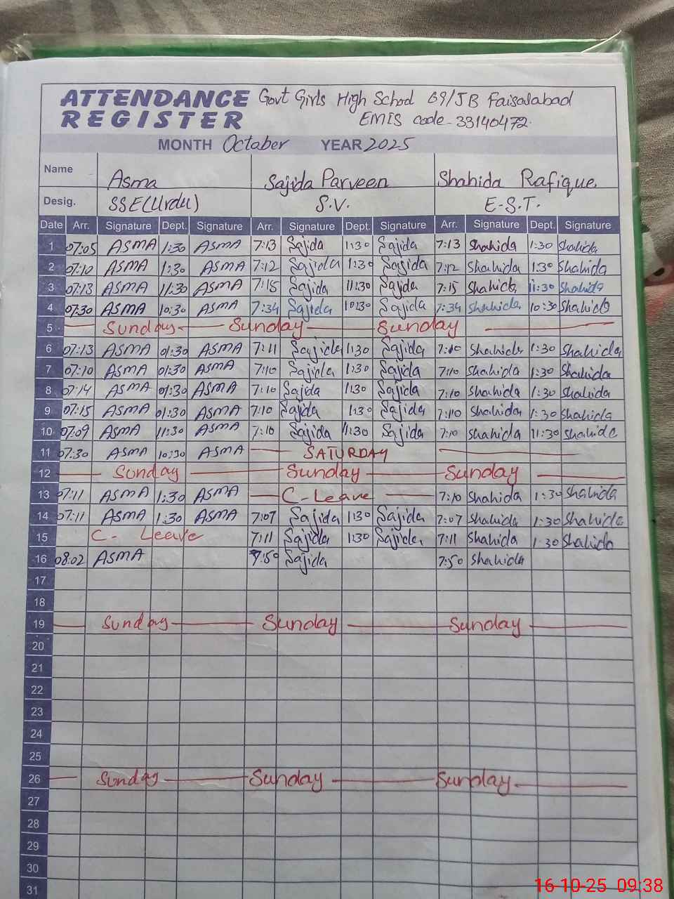 | District: FAISALABAD | Tehsil: FAISALABAD SADDAR | Markaz: SECONDARY-WING | Level: High | |
