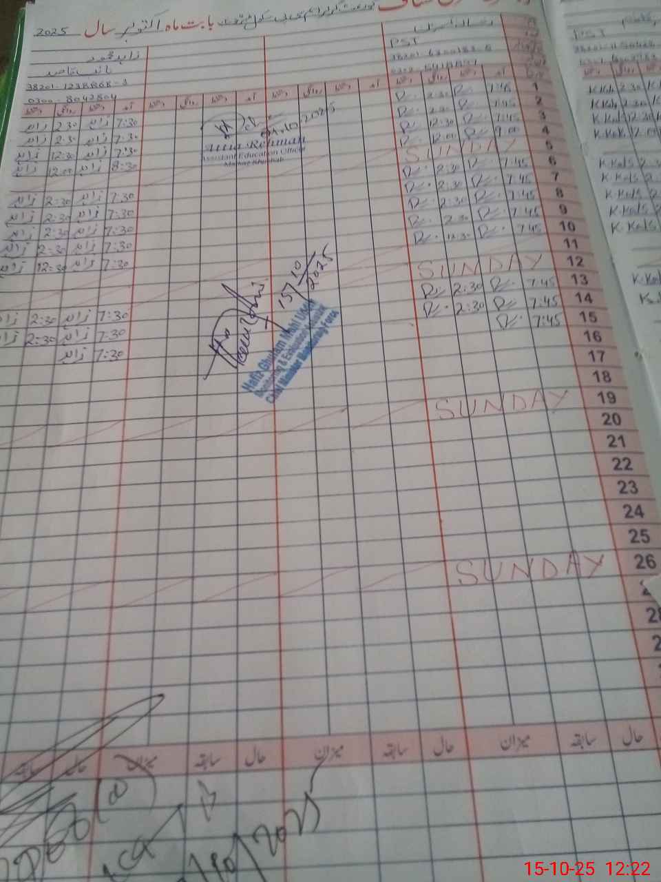 | Name: KI**** Ya**** Designation: (School Headmaster's/Headmistress's) PST Phone/Cell Number: 03**** |