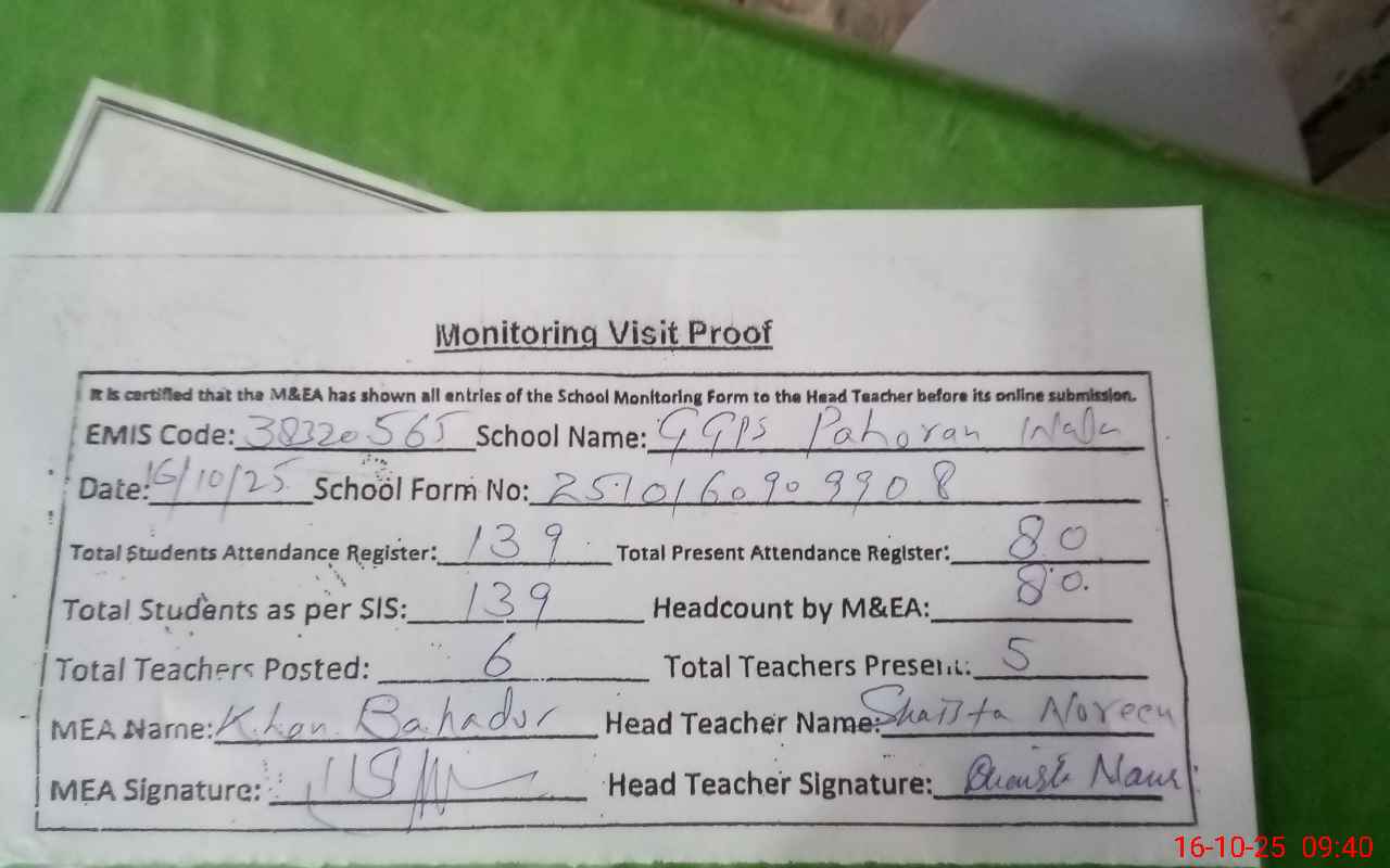 | EMIS Code: 38320565 | Name of School: GGPS PAHORAN WALA | |||