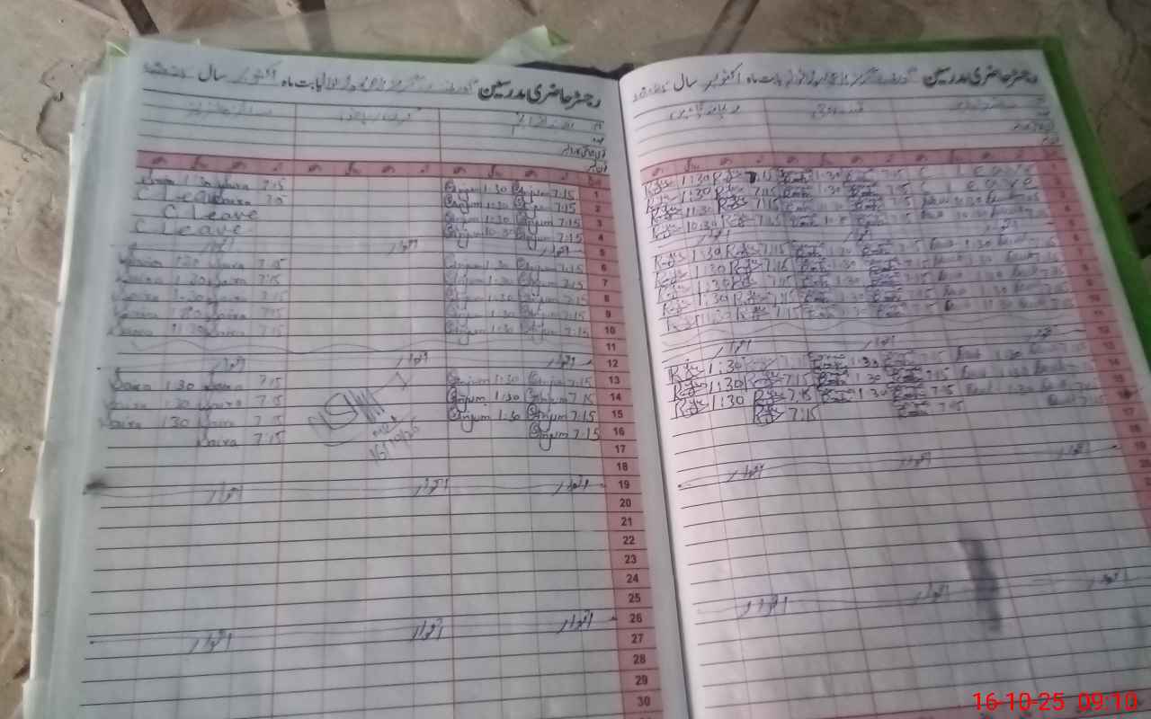 | Total no. of Classrooms: 4 No. of Classrooms Used for Teaching: 4 No. of Classrooms Storing Old Furniture, FTBs, etc: 0Comments if Any: PST Kiran Riaz absent wef 26 8 2024 no online information available in school |