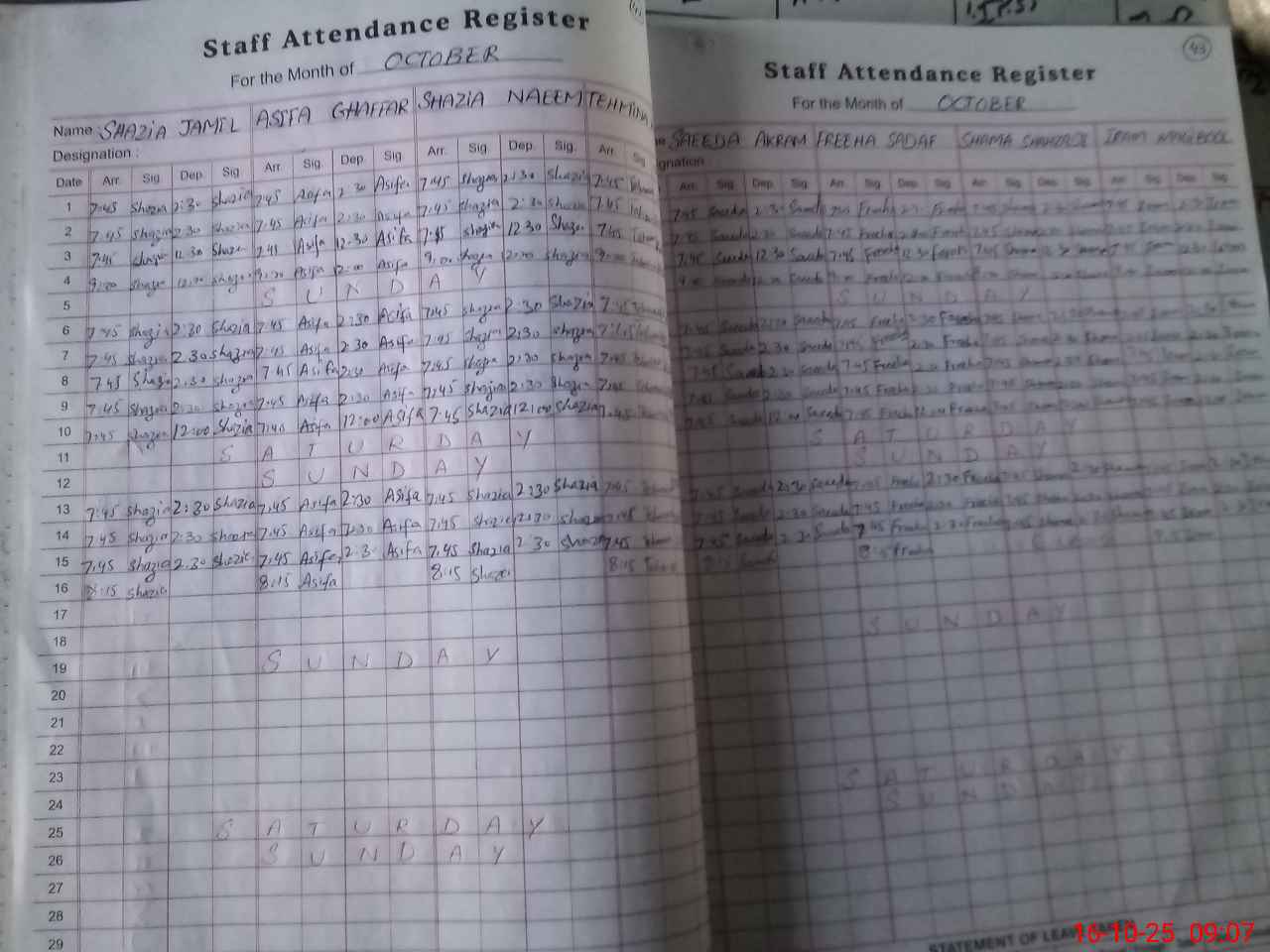 | 35**** | Na**** Ar**** | 1 | 0 | 0 | 31 | 0 | 0 | 0 | 0 | 0 | 0 | Absent (Un-Authorized) | |
