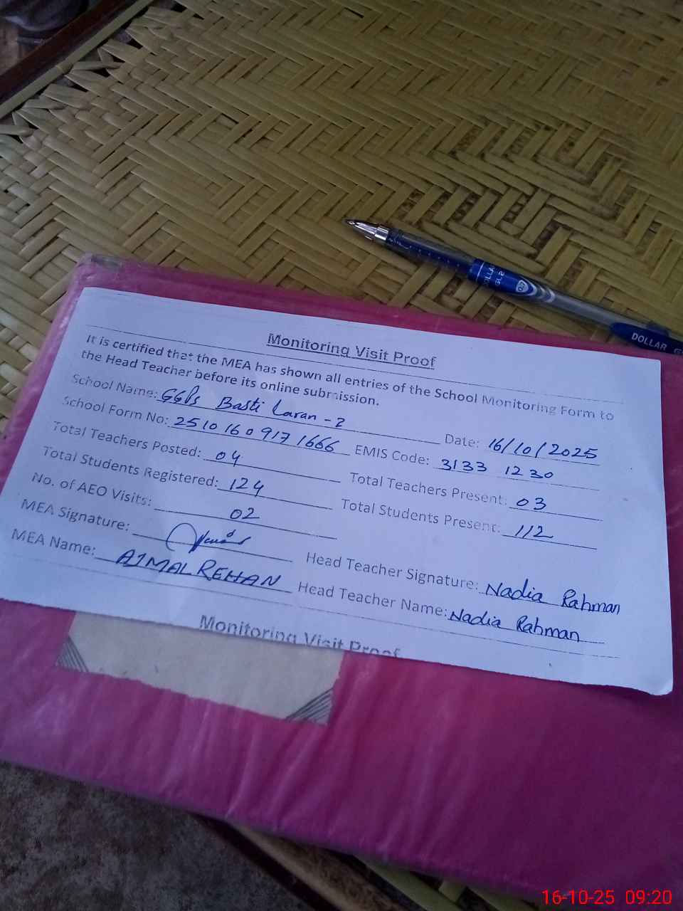 | EMIS Code: 31331230 | Name of School: GGPS BASTI LARRAN NO. 2 | |||