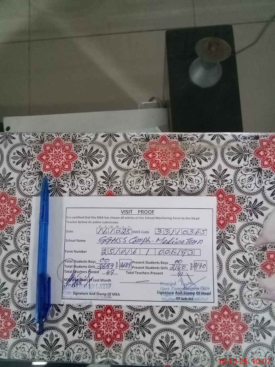 | EMIS Code: 33110365 | Name of School: GGHSS COMPREHENSIVE MADINA TOWN FSD | |||