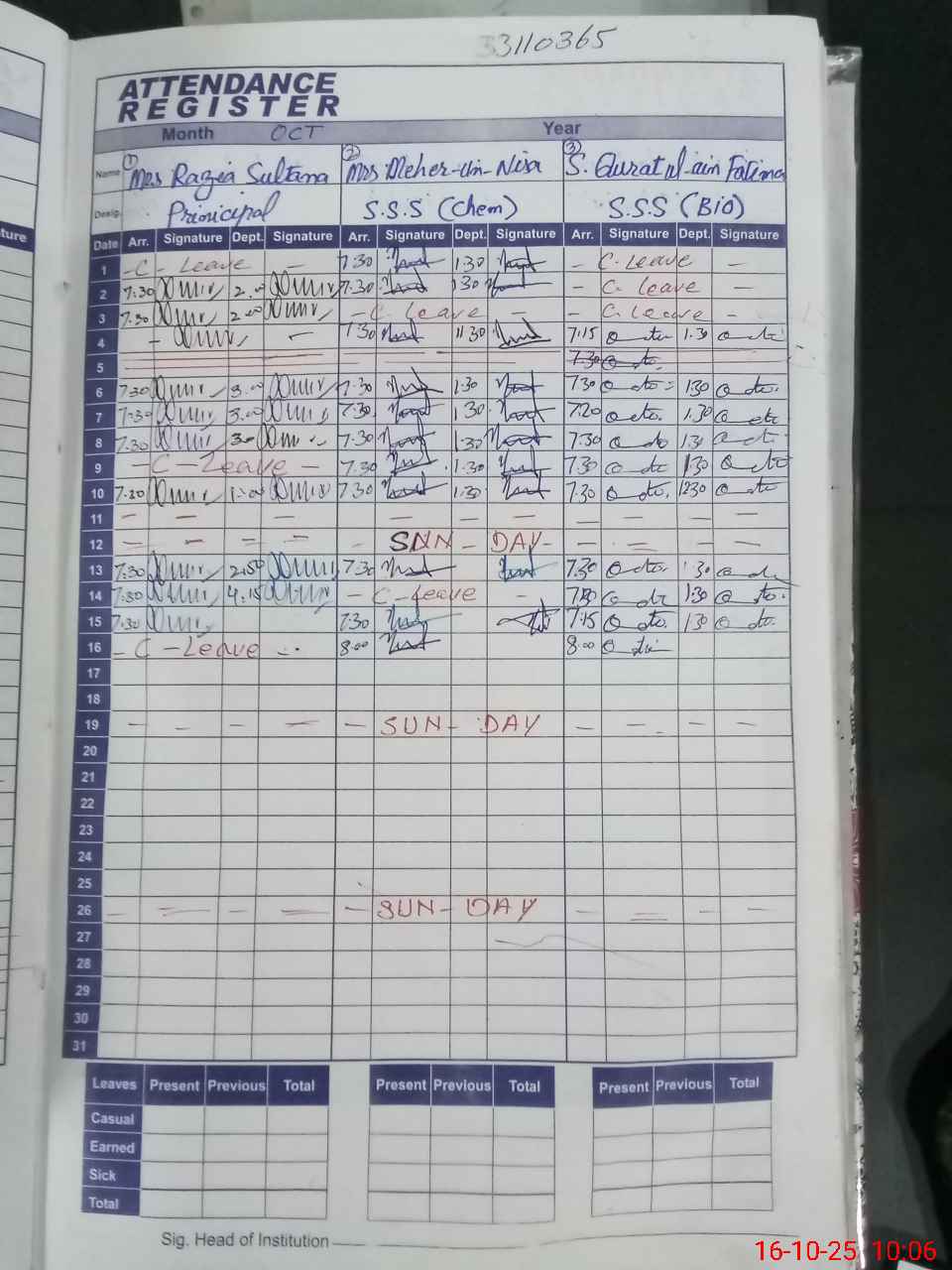 | 36**** | Na**** Ra**** | Regular | 30 | 0 | 0 | 0 | 30 | 0 | 0 | 0 | 0 | Medical | |