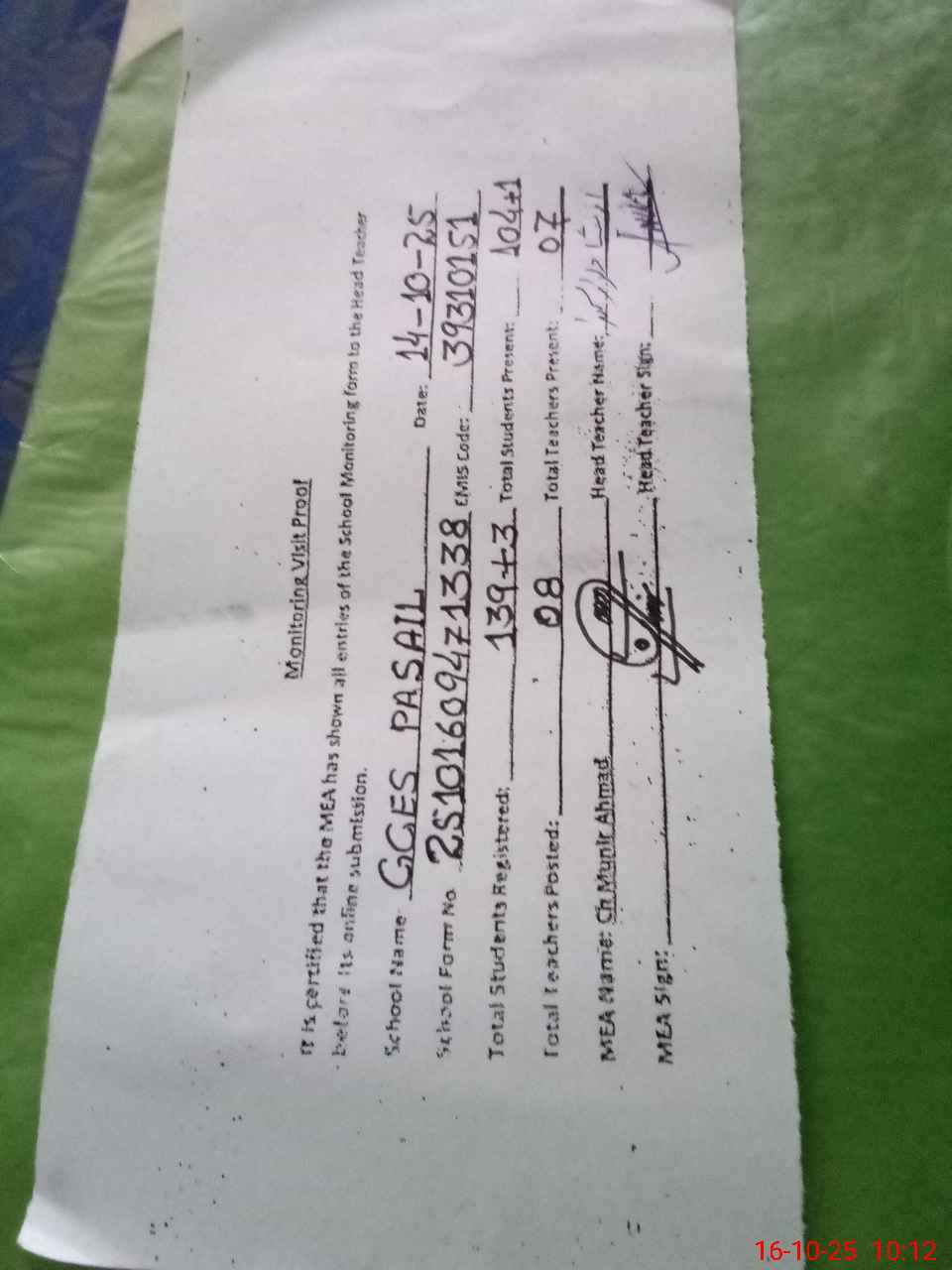 | EMIS Code: 39310151 | Name of School: GGES PASAIL | |||