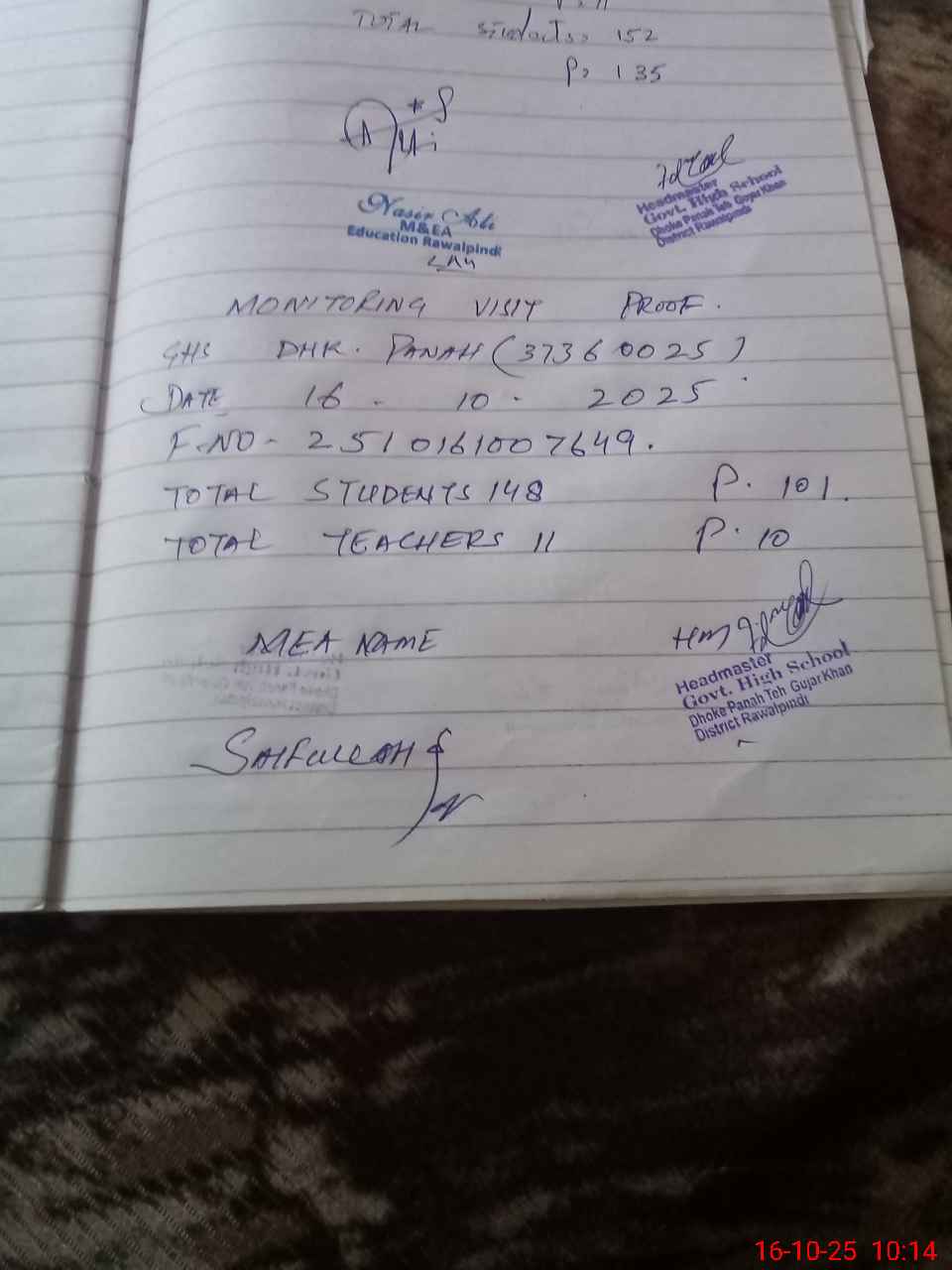 | EMIS Code: 37360025 | Name of School: GHS DHOK PANAH | |||