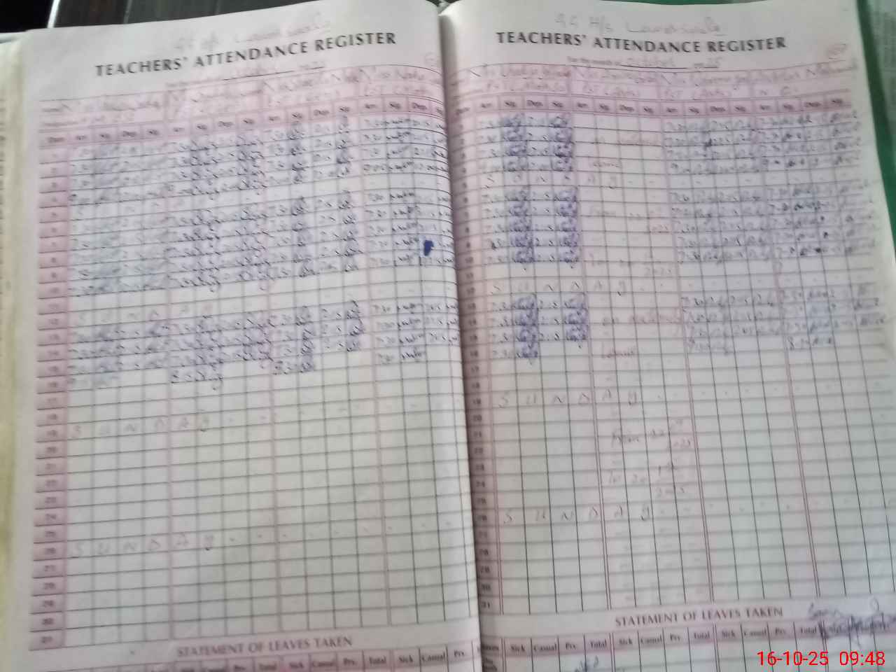 | Leave | Duty | Absent | Maternity | Medical | Ex- Pak |