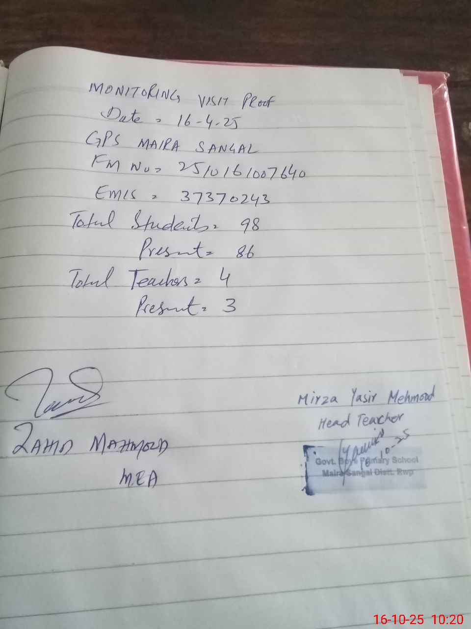 | EMIS Code: 37370243 | Name of School: GPS MAIRA SANGAL | |||