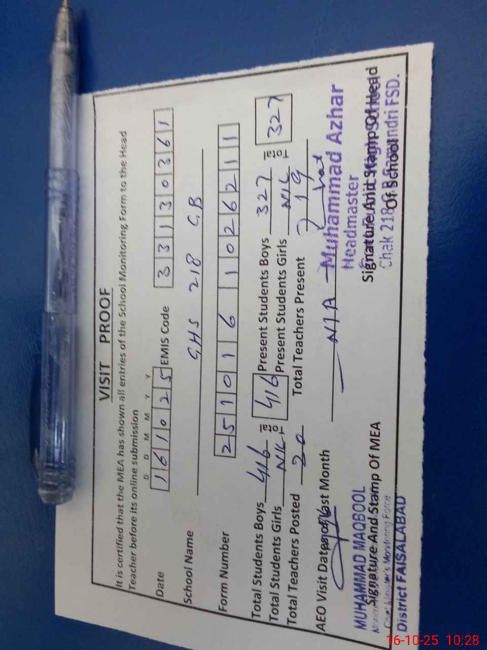 | EMIS Code: 33130361 | Name of School: GHS PUBLIC CHAK 218 GB SAMUNDRI FSD | |||