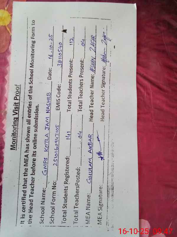 | EMIS Code: 38110540 | Name of School: GMPS KOTLA JAAM NASHEB | |||