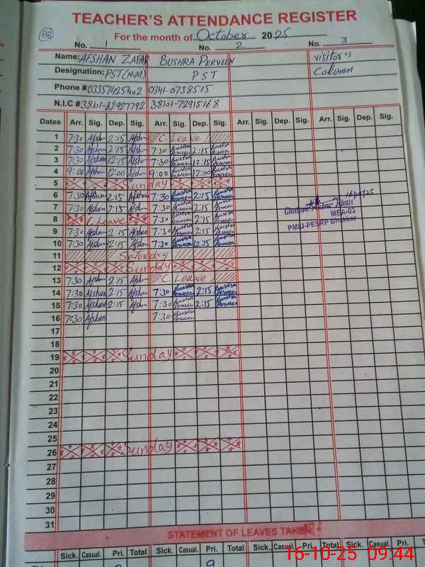 | Name: Af**** Za**** Designation: (School Headmaster's/Headmistress's) PST Phone/Cell Number: 03**** |