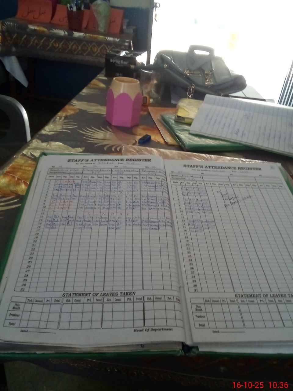 | Leave | Duty | Absent | Maternity | Medical | Ex- Pak |