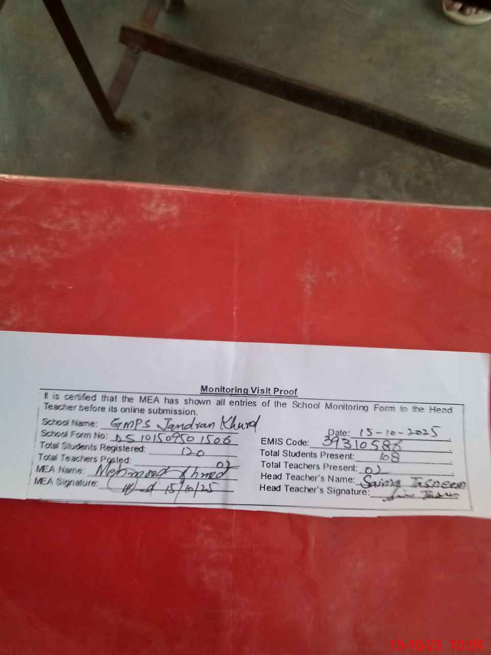 | EMIS Code: 39310586 | Name of School: GMPS JANDRAN KHURD | |||