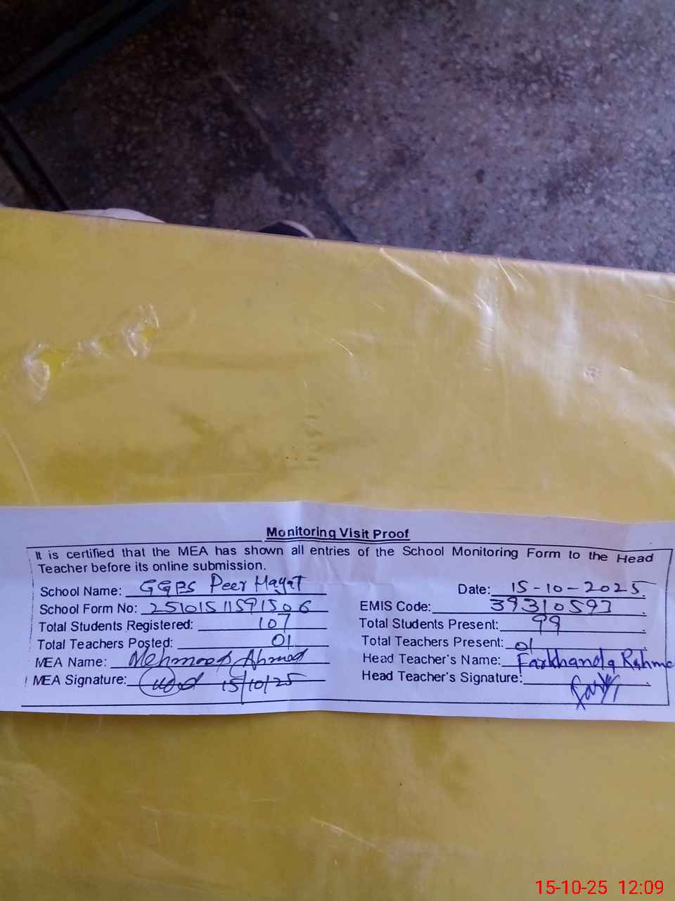 | EMIS Code: 39310593 | Name of School: GGPS PIR HAYAT | |||