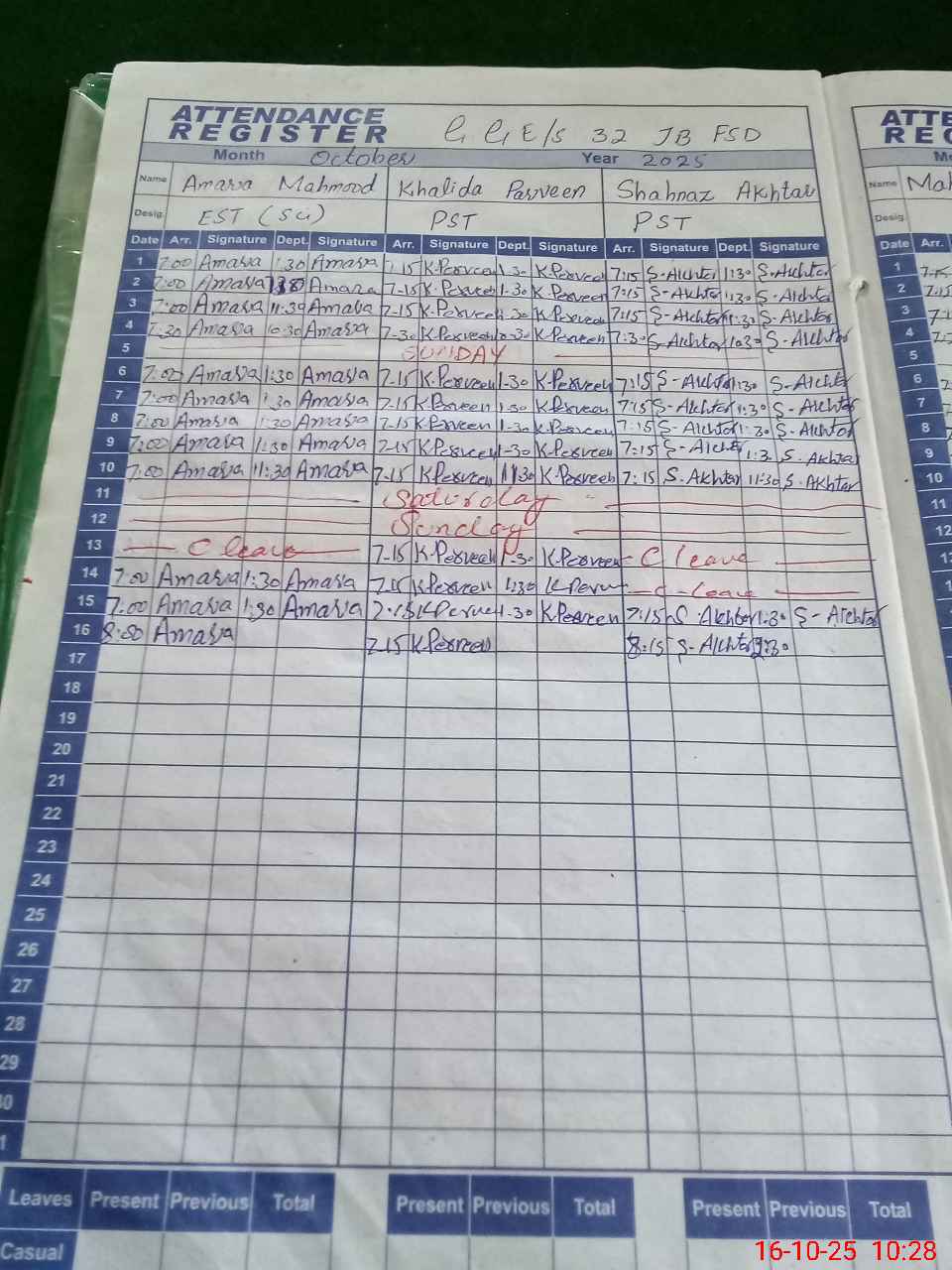 | Leave | Duty | Absent | Maternity | Medical | Ex- Pak |