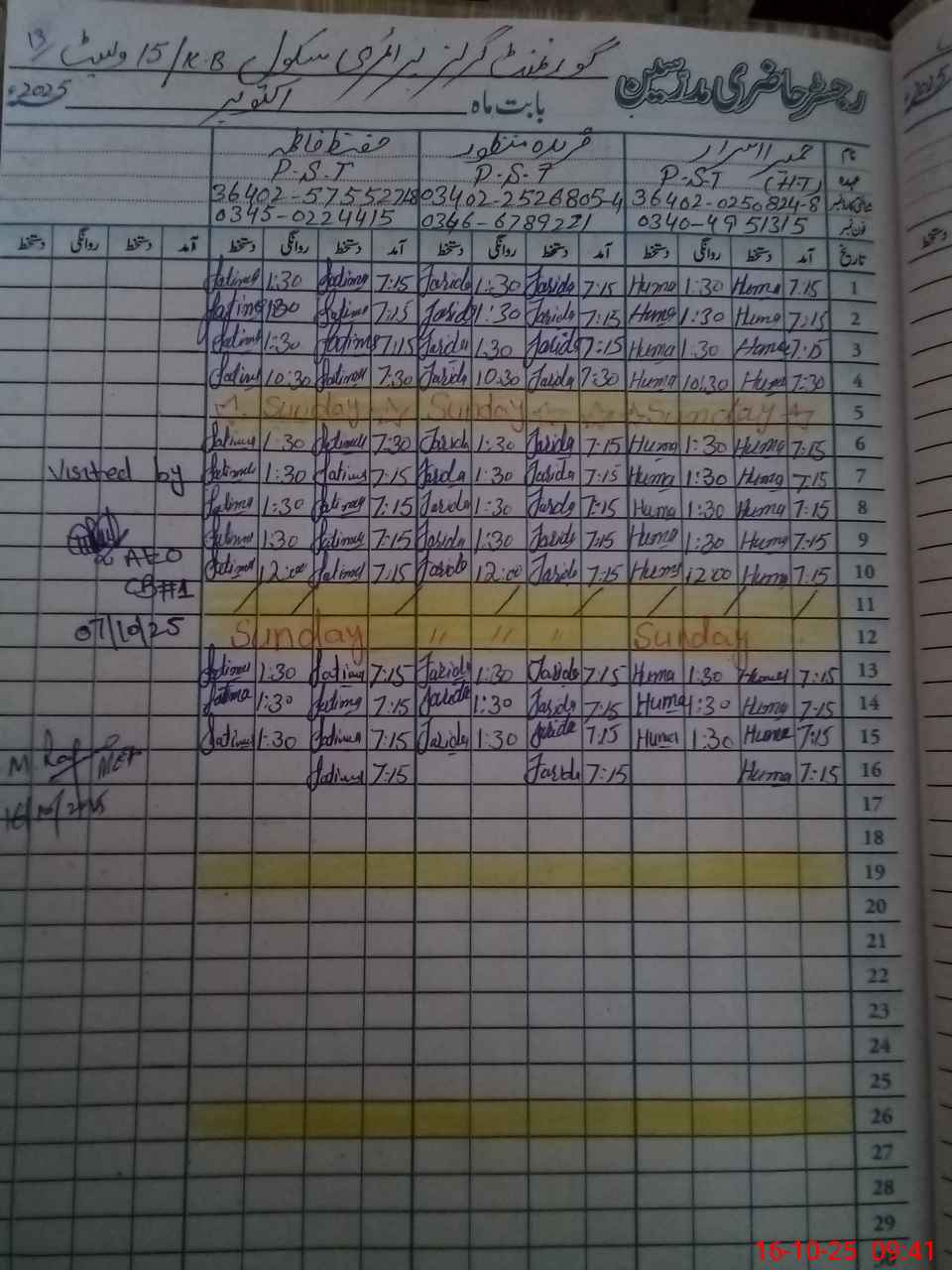 | Name: HU**** IS**** Designation: (School Headmaster's/Headmistress's) PST Phone/Cell Number: 03**** |
