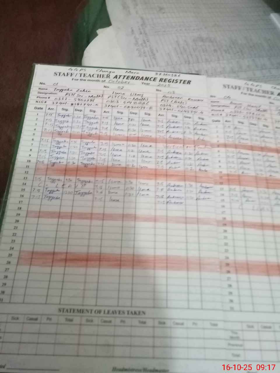 | Name: Ta**** Za**** Designation: (School Headmaster's/Headmistress's) ESE Sci Math Phone/Cell Number: 03**** |