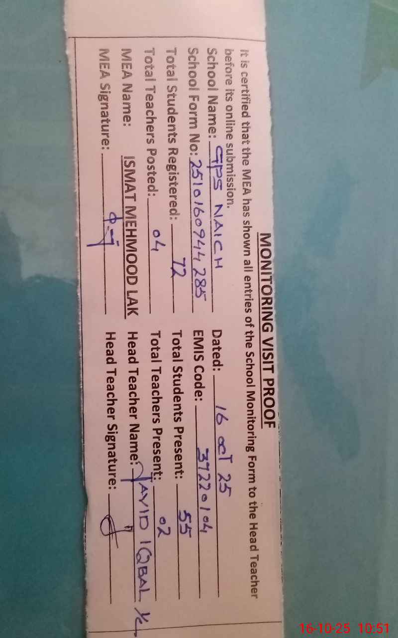 | EMIS Code: 37220104 | Name of School: GPS NAICH | |||