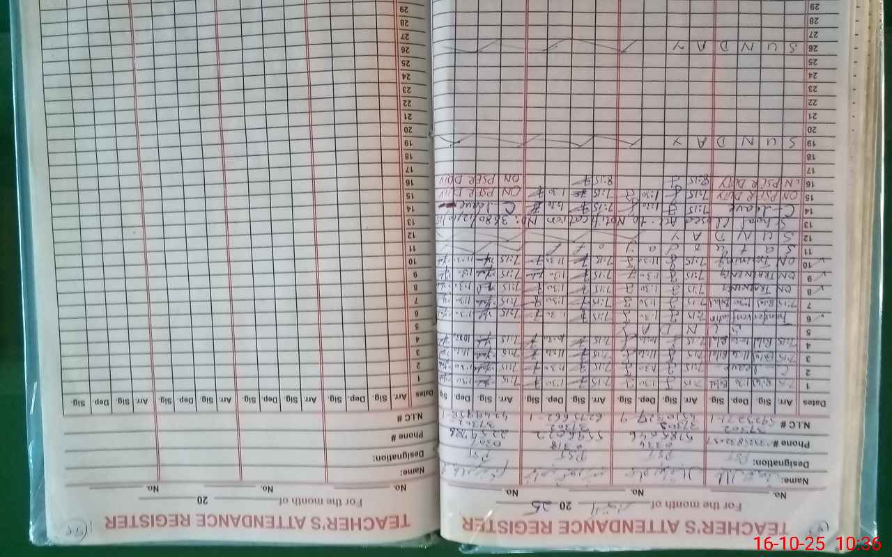 | CNIC | Full Name | Designation | R/C | Absence During Last Calender Month |