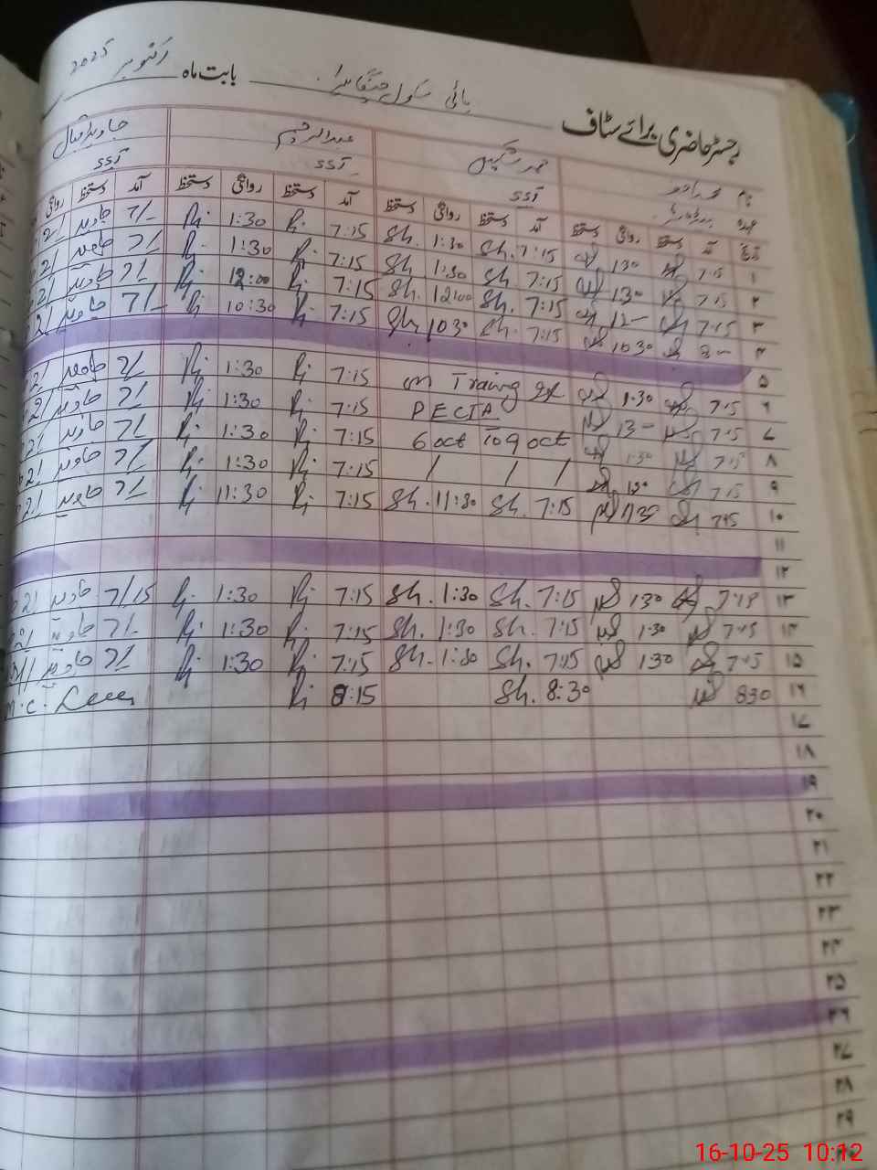 | CNIC | Full Name | Designation | R/C | Absence During Last Calender Month |