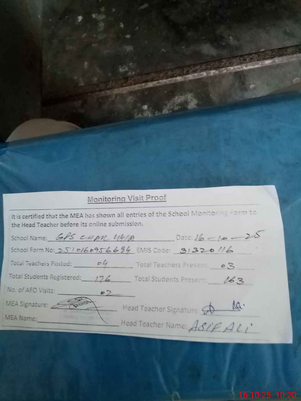 | EMIS Code: 31320116 | Name of School: GPS CHAK 44/A | |||