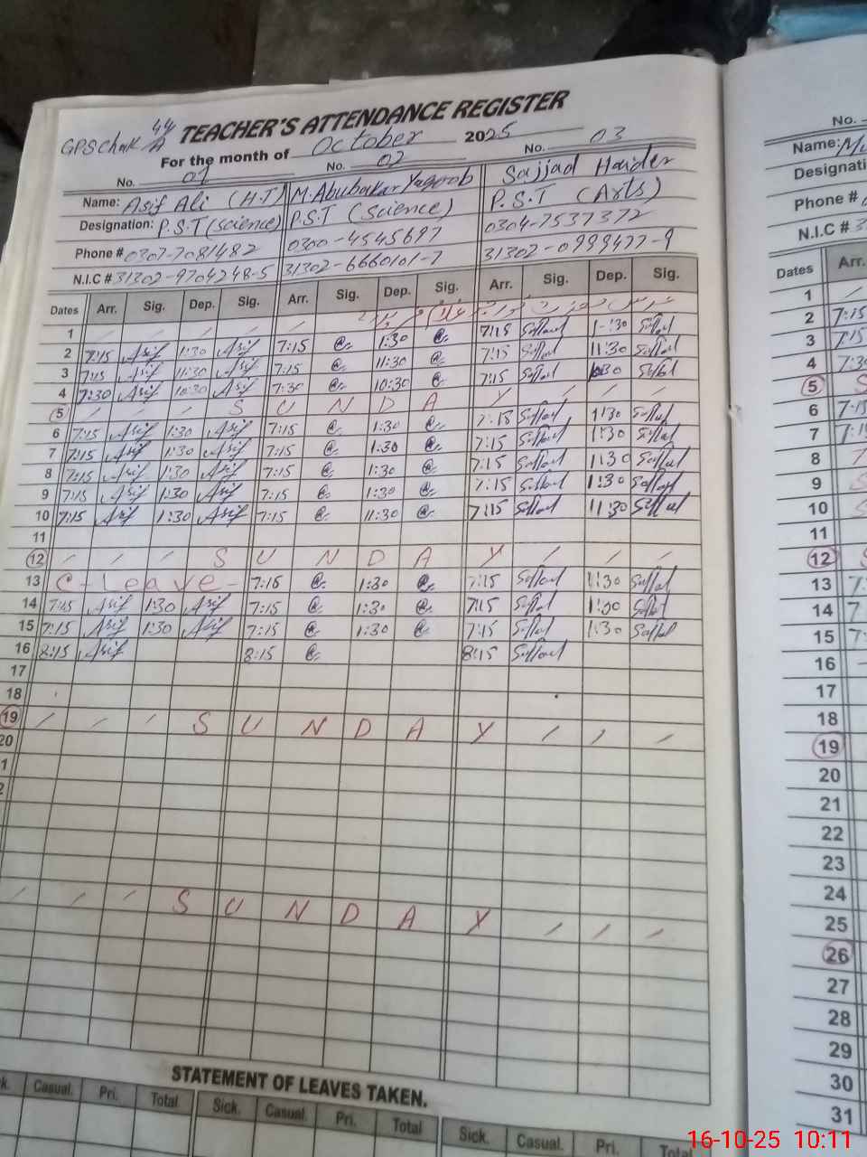 | Name: AS**** AL**** Designation: (School Headmaster's/Headmistress's) PST Phone/Cell Number: 03**** |