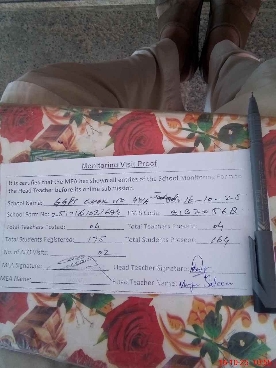 | EMIS Code: 31320568 | Name of School: GGPS CHAK 44/A JADEED | |||