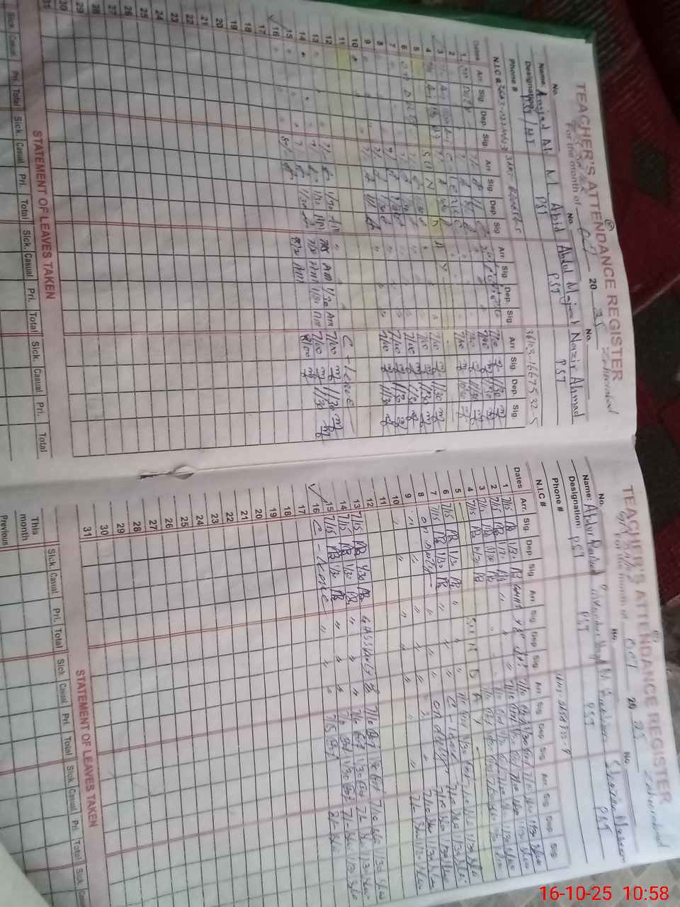 | Name: AM**** AL**** Designation: (School Headmaster's/Headmistress's) PST Phone/Cell Number: 03**** |