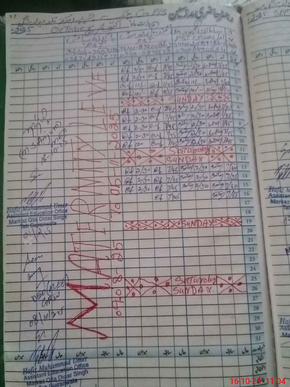 | Name: SU**** Me**** Kh**** Designation: (School Headmaster's/Headmistress's) PST Phone/Cell Number: 03**** |